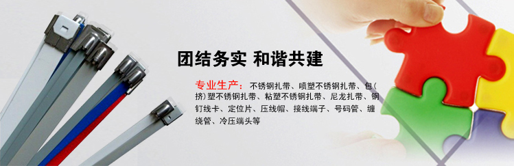 樂(lè)清迎發(fā)電纜附件有限公司專業(yè)生產(chǎn)不銹鋼扎帶、噴塑不銹鋼扎帶、包(擠)塑不銹鋼扎帶、粘塑不銹鋼扎帶、尼龍?jiān)鷰А撫斁卡、定位...